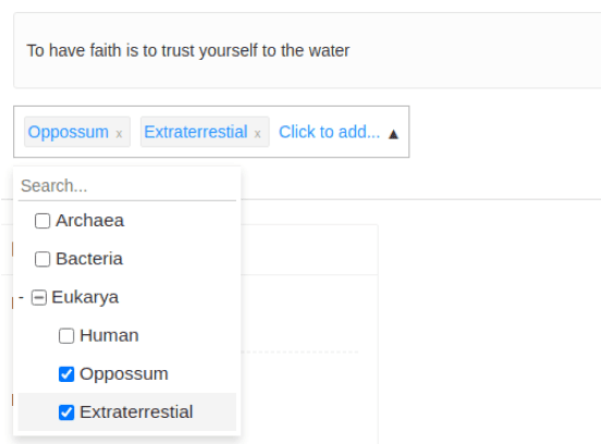 Use the Taxonomy control tag to create a taxonomy of choices for annotators to select from: